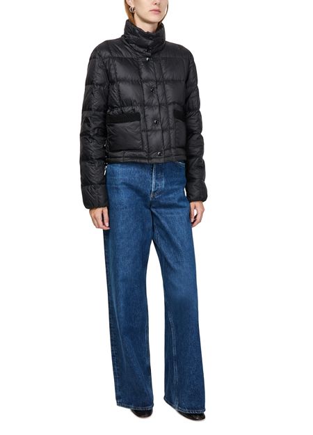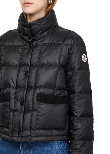 Discover Moncler's Jarcieu down jacket, a perfect blend of style and functionality. The regular fit with a cropped silhouette offers a contemporary edge, while button fastening and patch pockets enhance practicality. Its padded texture and high neck ensure warmth, making it ideal for both casual and chic outings.
