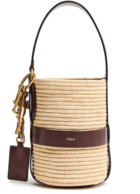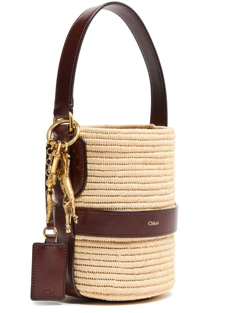 Unveil Chloe's Kerala 25 bucket bag, a stylish companion with a drawstring closure and printed logo. This small bucket bag, featuring a gold finish and visible topstitching, can be hand-carried or worn on the shoulder with its thin strap and single handle.