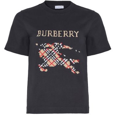 Reveal the Burberry Graphic T-shirt. This top boasts a sleek crew neck and short sleeves, perfect for a modern look. The iconic Burberry Check and Knight Design emblem add a stylish touch, while the front printed logo completes the ensemble. Ideal for versatile outfits, it exemplifies chic elegance.