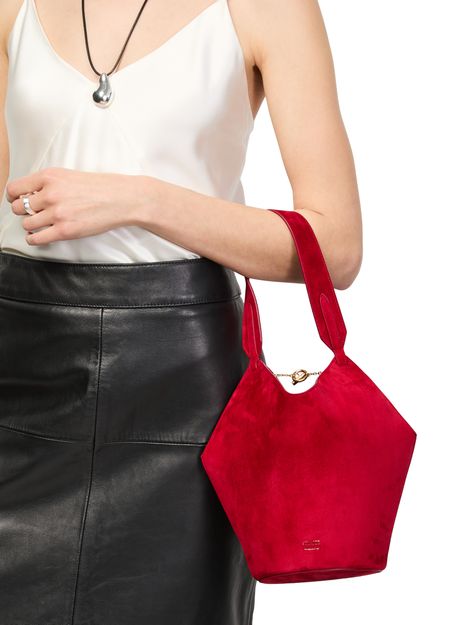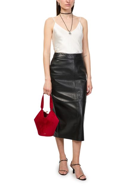 Reveal Khaite's basket shoulder bag, a modern statement with a single handle and gold clasp. The front logo and gold finish add a refined touch, while the single compartment ensures effortless organization. This tote blends signature detailing with functional elegance for a polished everyday look.
