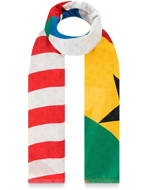 세계적인 컬래버레이션을 기념하며 여러 국가의 다채로운 엠블럼을 하나의 생동감 넘치는 패치워크로 선보이는 LV 플래그 스톨을 만나보세요. 버질 아블로의 스튜디오를 대표하는 국가의 국기를 잉크젯 프린트 기법으로 면 실크 혼방 소재에 더한 넉넉한 크기의 아이템입니다. 브랜드 아이덴티티를 강조하는 전체적인 모노그램 패턴을 확인해보세요.