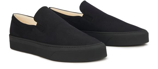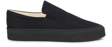 - 설명 : 골드 톤 레터링 로고, 슬립온 디자인, 엘라스틱 사이드, 라운드 토, 클로즈형, 로고 인솔, 두꺼운 아웃 솔.