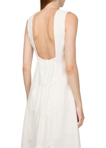 Introducing Posse's Matilda long dress, a stunning tiered dress with a loose fit that exudes effortless elegance. The round neck and sleeveless design showcase ruffle details, making it perfect for both casual and formal occasions. Embrace the comfort of this midi dress and elevate your wardrobe with its versatile style.