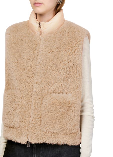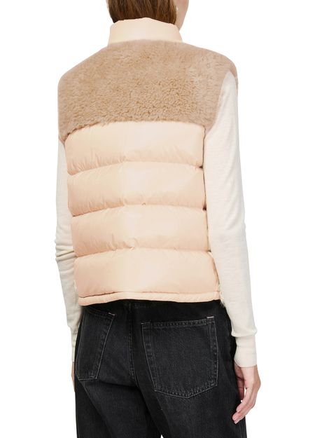 Unveil Moncler's Planeze sleeveless jacket, a regular fit gilet that combines warm fabric with bi-material allure. Its high neck and padded texture offer a stylish touch, while patch pockets and zipper closure provide practicality. A versatile piece, this short jacket with fur detail transitions seamlessly from casual to chic settings.