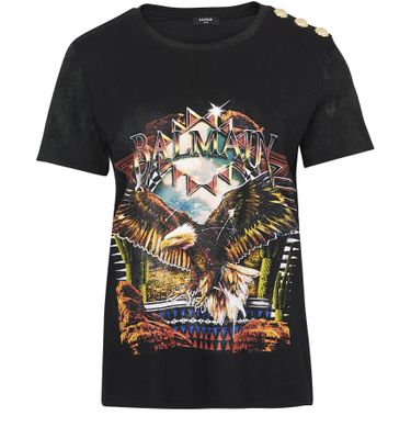 발망(Balmain) 컬렉션에 주기적으로 등장하는 로열 이글이 이 프린트 티셔츠를 장식하고 있어, 오리지널리티와 강렬함을 더해주고 굉장히 컨템포러리한 룩을 연출해줍니다.