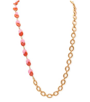 팝 컬러와 기하학적인 형태를 활용하는 이 네크리스는 패션 하우스 마르니(Marni)의 코드 파괴의 정신을 구현합니다. 골든 브라스와 레드 앤 캔디 로즈 톤 레진을 혼합한 이 네크리스는 애시메트릭 스타일을 선사합니다.