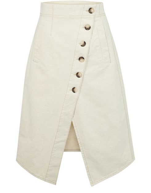 바움 운트 페르트가르텐(Baum und Pferdgarten)의 사바나(Savannah) 스커트는 빈티지 룩 스트레이트 라인의 미니 데님 스커트입니다.