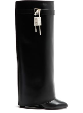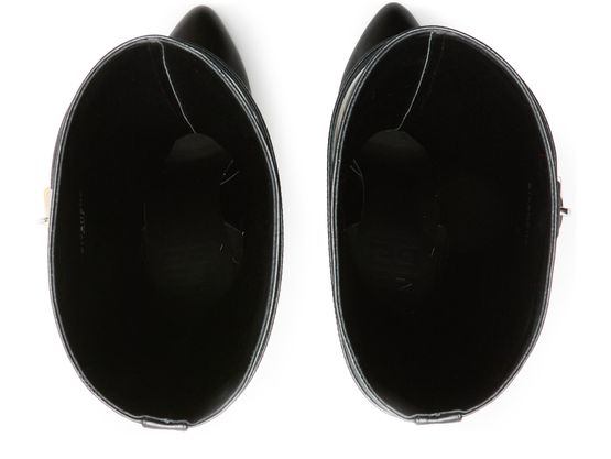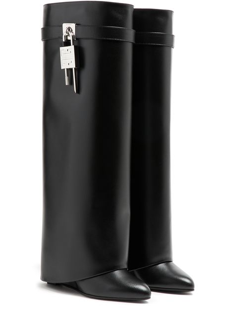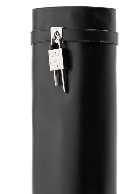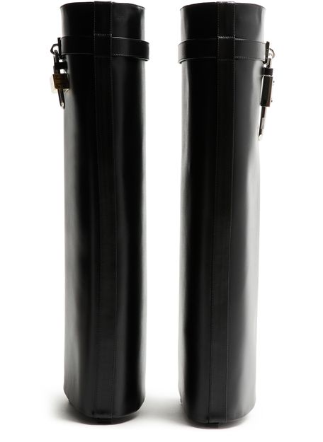 Introducing Givenchy's boots, crafted from smooth leather with a pointed toe and closed design. The buckled strap adds a touch of modern elegance, while the silver finish enhances its chic appeal. Perfect for making a statement, these boots offer both fashion and functionality.
