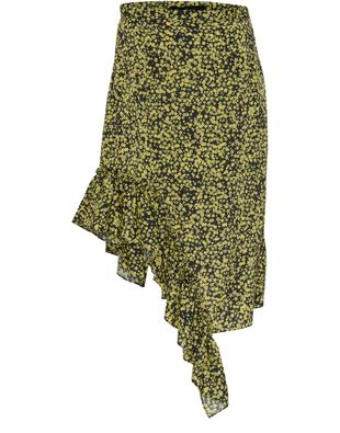 메종 록(Rokh)의 페미닌 스타일 프릴 스커트입니다. 가볍고 편안한 사이드 드레이프 모델입니다; 폴리에스터 100%.