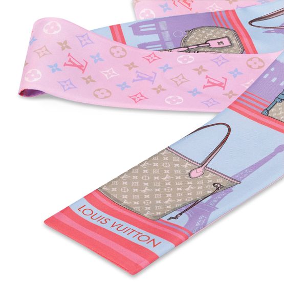 파리의 건축물을 배경으로 아이코닉한 하우스 핸드백을 묘사한 프린트가 돋보이는 스카이라인 스토리 방도. 부드러운 촉감과 은은한 광택을 선사하는 퓨어 실크 소재로 정교하게 완성한 넉넉한 길이의 아이템. 대조적인 색상으로 포인트를 준 모노그램 패턴이 특징인 뒷면.