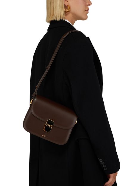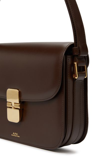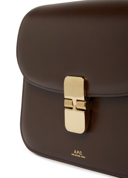깔끔한 라인의 머스트 해브 아이템인 그레이스 백은 A.P.C.의 상징적인 모델입니다. 이 액세서리는 부드러운 가죽과 지퍼로 마감되어 있습니다. 단단한 직사각형 모양은 단추가 달린 탭과 브랜드의 신중한 로고로 강조 표시됩니다. 반짝이는 가죽을 강조하는 금색 및 양각 디테일이 돋보입니다.