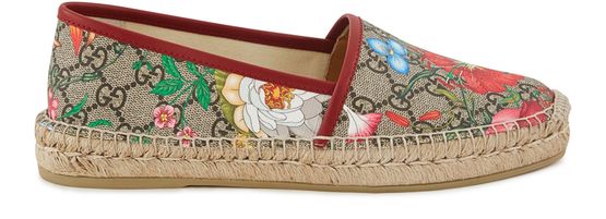 슈프림 GG 플로라(Supreme GG Flora) 에스파듀는 화려함과 우아함을 지닌 아이템입니다. 브랜드의 아이코닉 모티브가 플로럴 모티브와 함께 실크 스크린으로 더해진 캐주얼 에스파듀입니다.