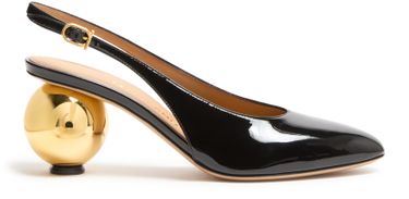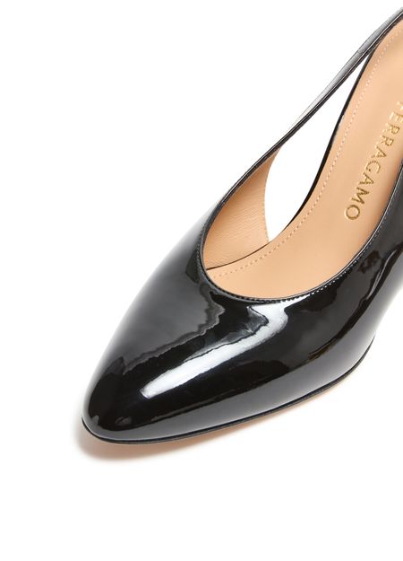 Introducing Salvatore Ferragamo's Tessie 70 pumps, where elegance meets functionality. Crafted from patent leather with a sophisticated gold finish, these pumps feature a pointed toe for a sleek silhouette. The medium heel and buckled ankle strap ensure comfort and secure fit, making them a timeless addition to any wardrobe.