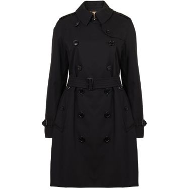 더블 버튼과 벨티드 웨이스트가 특징인 더 켄싱턴 헤리티지(The Kensinton Heritage) 미디 트렌치 코트는 페미닌한 스타일을 강조합니다. 칼라 안쪽으로 브랜드를 상징하는 빈티지 체크(Vintage Check) 디테일이 드러납니다.