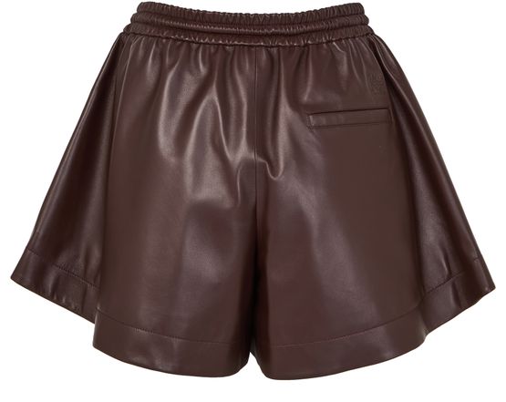 Reveal Loewe's trapeze shorts in nappa leather with a modern edge. Crafted from glossed leather and featuring large side pockets and a back pocket, these shorts boast visible stitching for added flair. Perfect for casual outings, the sleek design ensures you remain effortlessly stylish.