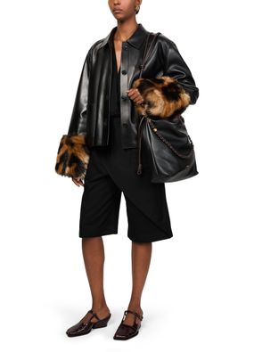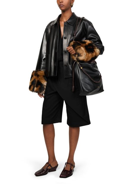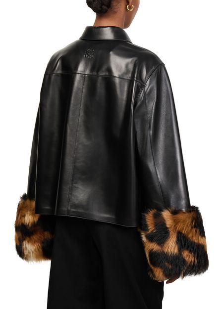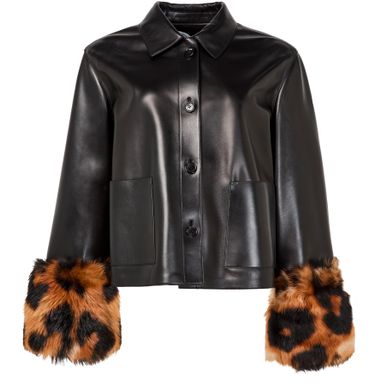 설명 : Embossed logo, logo at the back, turn-up sleeves with detachable printed shearling cuffs, smooth leather, regular fit and length, long-sleeved, patch pockets, front buttoned closure, fur detail.