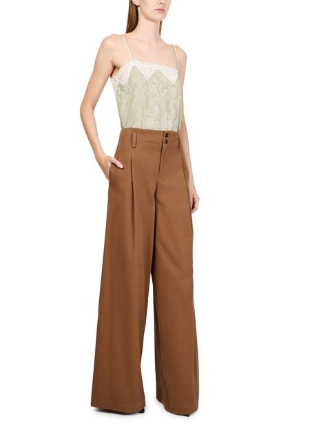 Unveil Chloe's wide leg trousers, designed for the fashion-forward individual. Ankle-length with front pleats and a buttoned zipper closure, these formal pants redefine elegance. Welt pockets and belt loops enhance functionality, making them a perfect blend of style and practicality for any wardrobe.