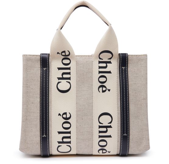 스트랩과 핸들을 갖추어 다양한 연출이 가능한 우디(Woody) 카바스 스몰 백은 끌로에(Chloé) 여성복 액세서리로, 파리 패션 하우스의 대비되는 로고가 돋보입니다.
