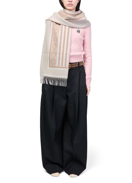 • 설명 : Brand's monogram, printed logo, striped print, fringed edges.