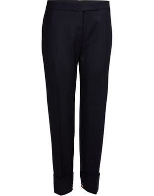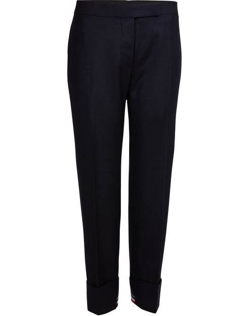 우아하면서도 세련된 톰 브라운(Thom Browne)의 울 팬츠는 페미닌한 룩을 강조합니다. XXL 옷단 디테일의 시티 팬츠는 하이힐이나 굽 높은 앵클 부츠와 잘 어울립니다.