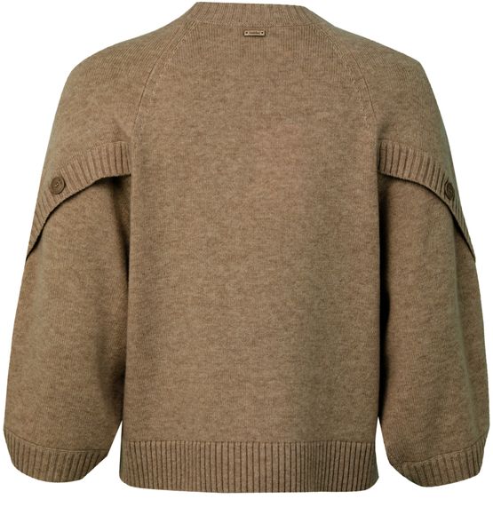 • 描述 : Ribbed, crew neck, three-quarter-sleeved, bat sleeve, embellished buttons, logo at the back.