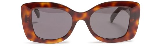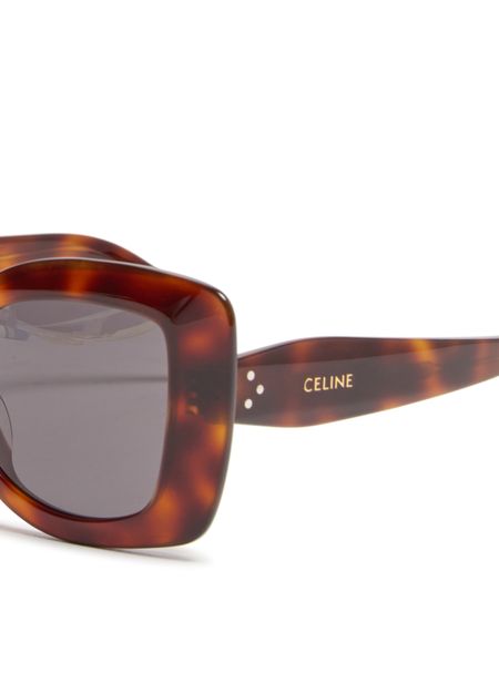 Discover Celine's Butterfly sunglasses in acetate. Featuring a chic butterfly frame and smoke lenses, these sunglasses offer complete UVA and UVB protection. The signature Celine and three-dot detail on the temples add a touch of elegance, with precise measurements including a temple length of 5.5 inches and lens width of 2 inches.