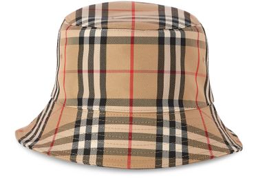 将此款设计风格大胆、带有著名check图案的遮阳帽与您的出行装束搭配穿着。 此款风格新颖的时尚单品由Burberry品牌设计创作。