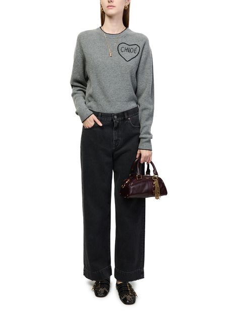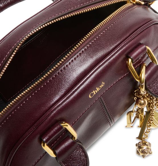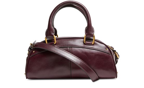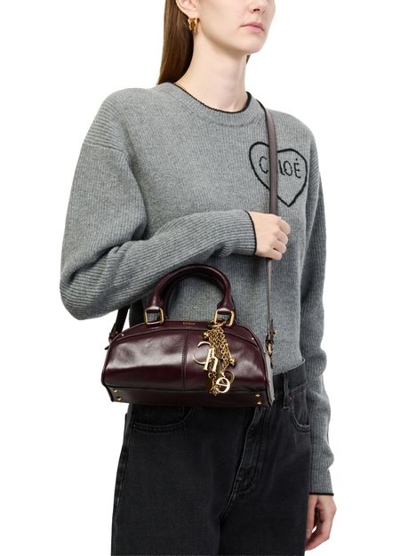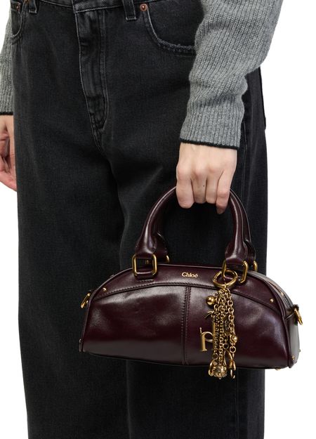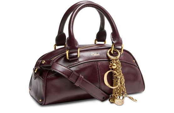 Reveal Chloe's shoulder bag, crafted from smooth leather and adorned with gold-tone charms suspended by a delicate chain. The adjustable, detachable thin strap and double handles offer versatile carrying options, while the zippered interior pocket and front gold logo add refined functionality and signature style.