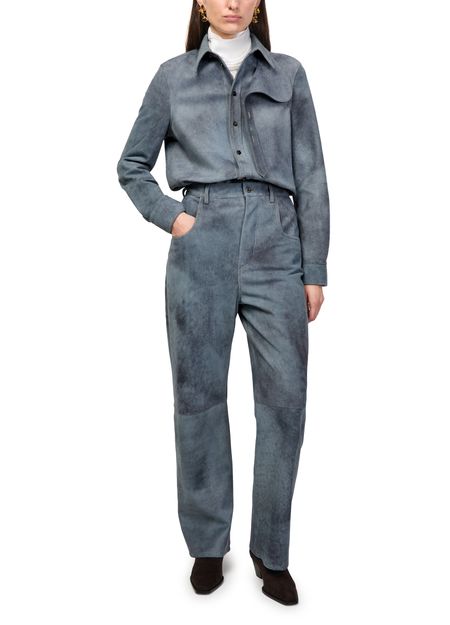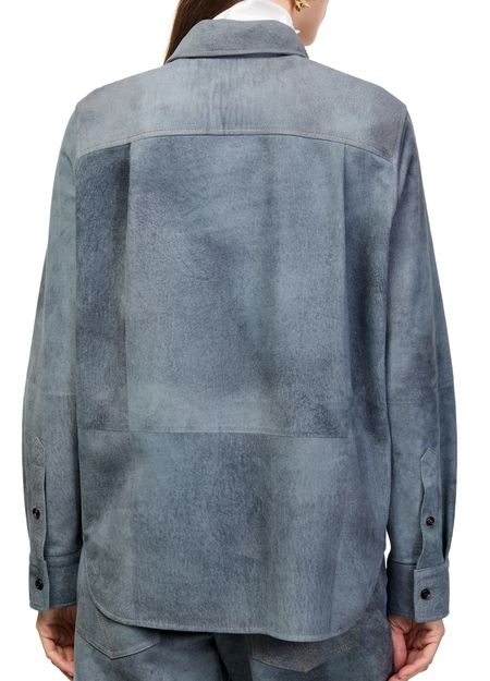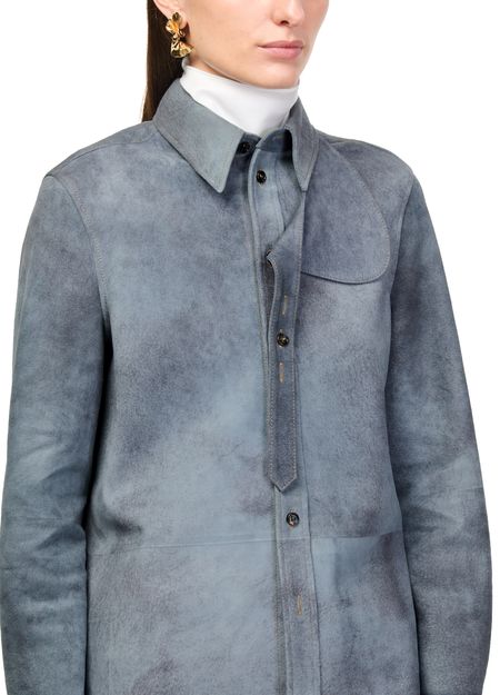 Reveal Bottega Veneta's Cloudy suede shirt, a modern top featuring long, cuffed sleeves and a front buttoned closure. The faded effect and visible stitching add a distinctive touch, making it a versatile piece that pairs effortlessly with both tailored trousers and casual denim.