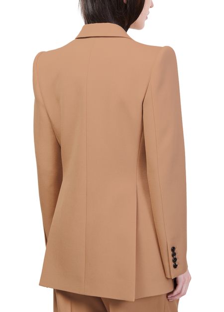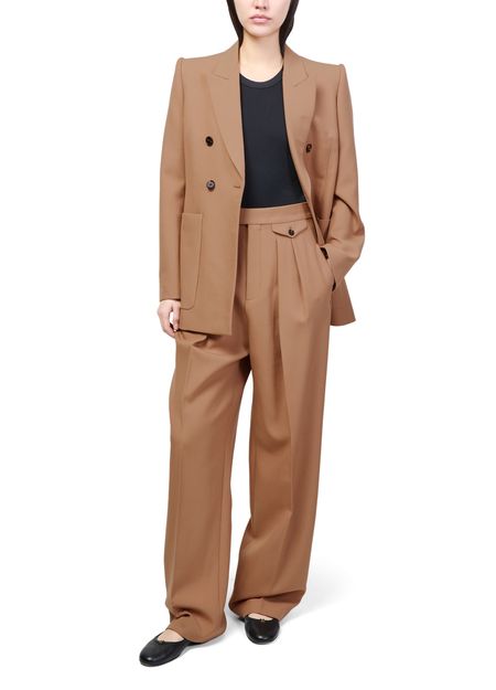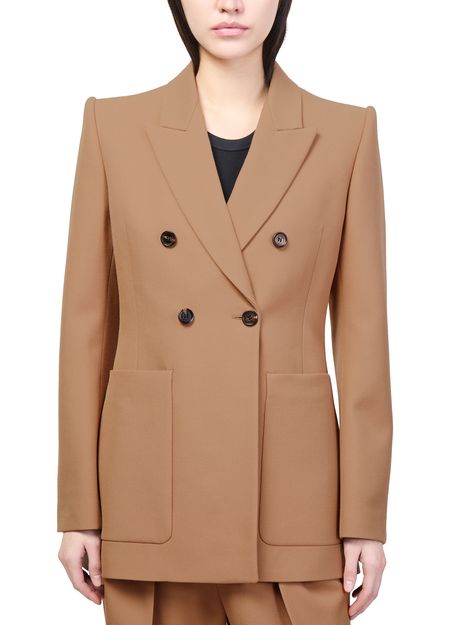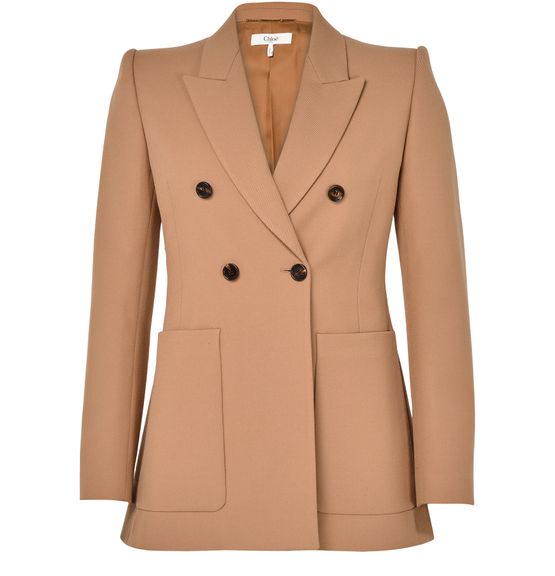 Reveal Chloe's double-breasted blazer, a short silhouette with a refined collar and long sleeves. Patch pockets add a practical touch, while the classic double-breasted closure ensures timeless appeal. This versatile piece transitions seamlessly from day to evening, making it a standout in any modern wardrobe.