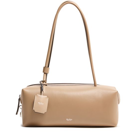 Unveil the sophistication of Max Mara's Holdall string shoulder bag, crafted from smooth leather. This exquisite piece features visible stitching, a zipper closure, and a front logo. Its double handles add to the functional elegance, making it an ideal choice for those who appreciate timeless style and exceptional craftsmanship.