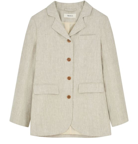 Reveal Skall Studio's Sahara blazer, crafted with a fabric interior and tailored long sleeves. The button fastening and refined flap and breast pockets add a sophisticated touch, making this top a versatile choice for both professional and casual ensembles.