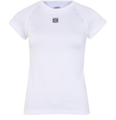 Reveal Loewe's small fit T-shirt in cotton and viscose. This slim fit top features a classic crew neck and short sleeves, ideal for a sleek silhouette. The embroidered front logo adds a touch of distinction, making it perfect for both casual and chic outfits.
