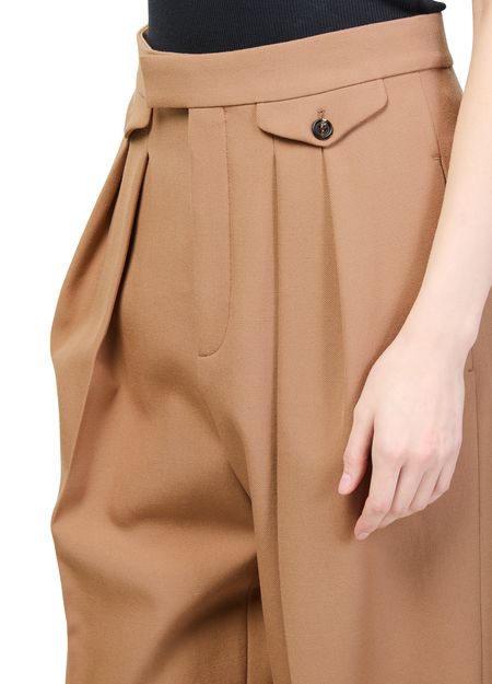 Reveal Chloe's straight pleated pants, tailored with an ankle-length silhouette and a belted waist for refined structure. Front pleats and visible stitching add modern flair, while flap and back pockets offer practical elegance. A buttoned zipper closure ensures a sleek fit, perfect for elevating any formal ensemble.