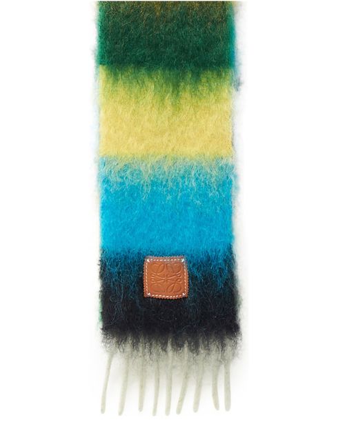 这条条纹马海毛围巾是罗意威的经典之作。 这条给人带来温暖的精致围巾拥有渐变色彩,两端有细流苏。