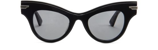 Bottega Veneta 凭借其太阳镜系列吸引现代女性的关注。 侧面对比色饰面突显猫眼造型设计。