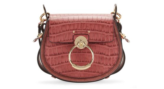 由 Chloé 设计,选用悬置签名翻盖环扣闭合的此款 Tess 小号手提包必将以其金色搭扣、立体鳄鱼皮革的设计备受女士倾心。