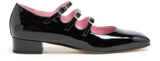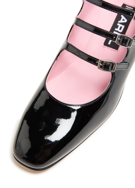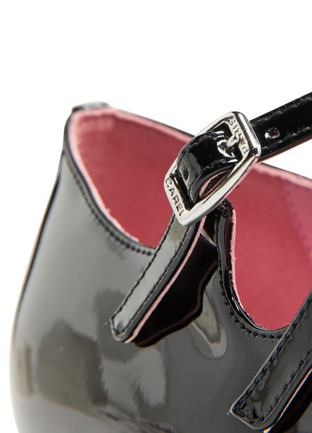 Carel's Ariana ballerinas are made of patent leather and feature a sleek shape with a square heel and very thin sole. They are designed with buckled straps and a logo insole for added style. The adjustable buckle straps and round toe provide comfort and flexibility for everyday wear.