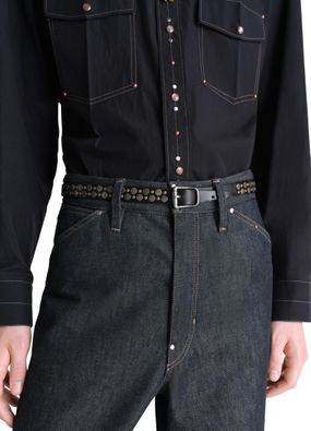 Unveil lemaire's belted hobo bag, a fusion of glossed leather and craftsmanship. This shoulder bag, featuring a single handle and an adjustable strap, offers gussets and a zippered closure for secure elegance. Inside, a zippered pocket enhances its functional style.