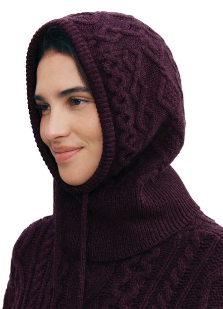 Cable knit balaclava with drawstring
