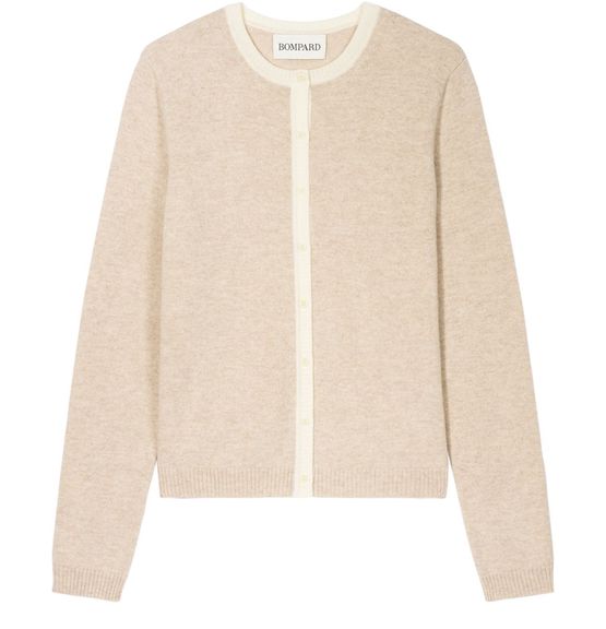Reveal Bompard's cardigan with buttoned sleeves, featuring a refined front buttoned closure and long sleeves for a sleek silhouette. The soft knit texture and subtle detailing make this piece effortlessly versatile, perfect for layering from day to night with understated sophistication.