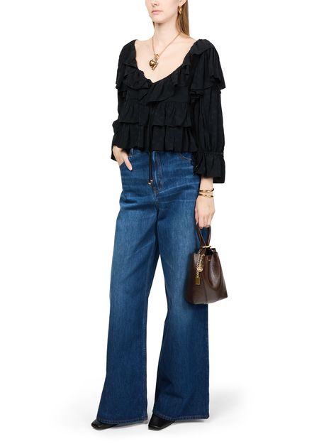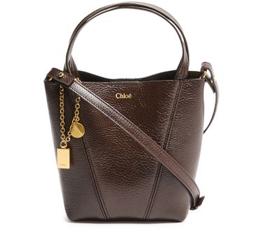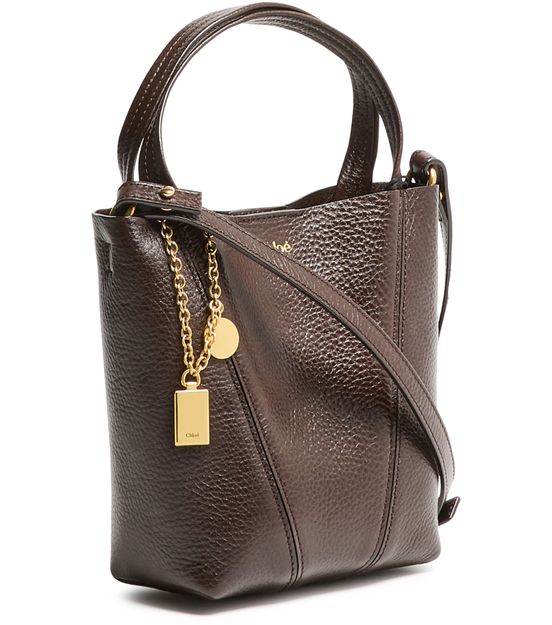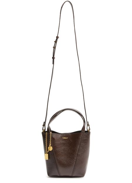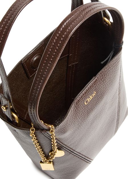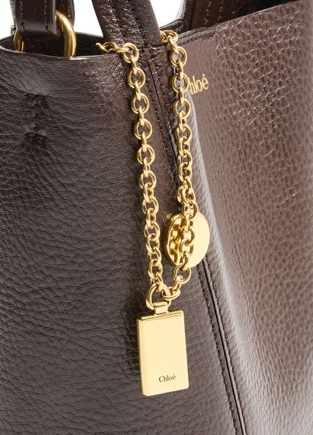 Reveal Chloe's Spin grained leather tote bag, crafted from supple grained leather and adorned with gold-tone charms on a delicate chain. The signature saddle stitch and gold logo add refined detail, while the adjustable thin strap and snap-button fastening offer both style and versatility for modern sophistication.