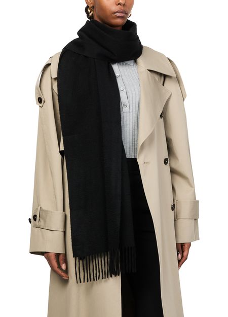 Discover Eric Bompard's fringed cashmere scarf, a perfect blend of style and warmth. This accessory features elegant fringed edges and an embroidered logo, adding a touch of sophistication to your ensemble.