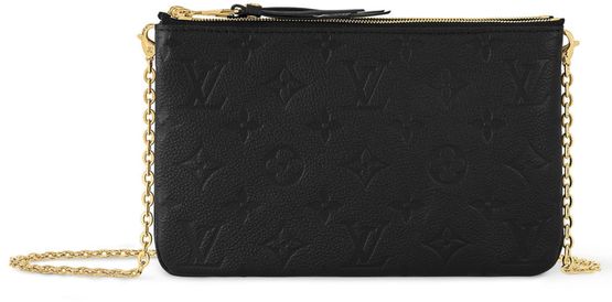 本款 Double Zip Pochette 链条包取材柔软的 Monogram Empreinte 压纹皮革,其拉链袋可收纳手机等贵重物品,中央空间实现随行所需的轻松取放,无论肩背或手提均可胜任快节奏生活。