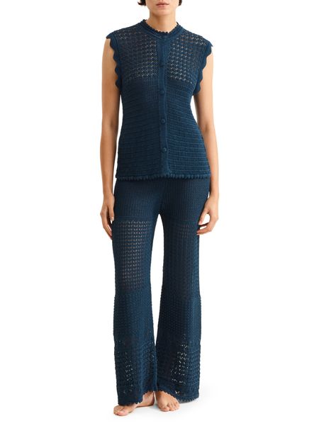 Reveal Eres's casual ankle-length pant, designed with an elasticated waist for effortless comfort. Delicate lace details add a refined touch, while the relaxed fit ensures versatility for any occasion. Perfect for elevating your everyday wardrobe with understated sophistication and ease.