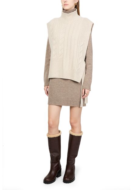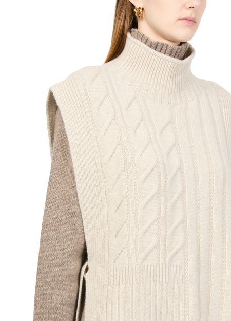 Celebrate Eric Bompard's rollneck crop top, a seamless blend of style and comfort. Crafted with a ribbed texture, this sleeveless design features a unique bow fastening. Its regular fit ensures a flattering silhouette, perfect for layering over skirts or tailored pants for any occasion.