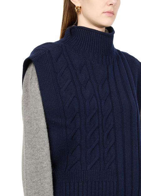 Celebrate Eric Bompard's rollneck crop top, a seamless blend of style and comfort. Crafted with a ribbed texture, this sleeveless design features a unique bow fastening. Its regular fit ensures a flattering silhouette, perfect for layering over skirts or tailored pants for any occasion.