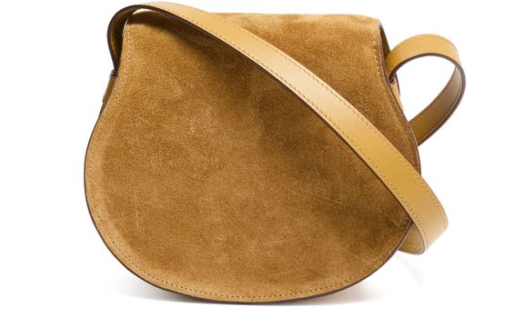 Celebrate Chloe's Marcie shoulder bag with its signature saddle stitch detailing. Crafted in sumptuous suede, it features a flap closure and adjustable thin strap for versatile wear. The interior pocket and gold finish add a touch of elegance, making it both stylish and functional.