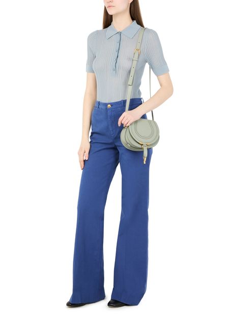 Chloé 品牌经典款式——Marcie 单肩迷你包,是一款精美无比的小配饰,装饰有皮革贴片和压印标识包围的缝线。