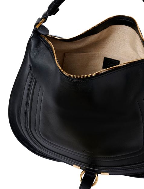 Reveal Chloe's hobo shoulder bag, crafted from smooth leather with a single handle for effortless style. The embossed logo and gold finish add a refined touch, while the zipper closure and interior pocket ensure both security and practicality. Visible topstitching highlights the brand’s attention to detail.